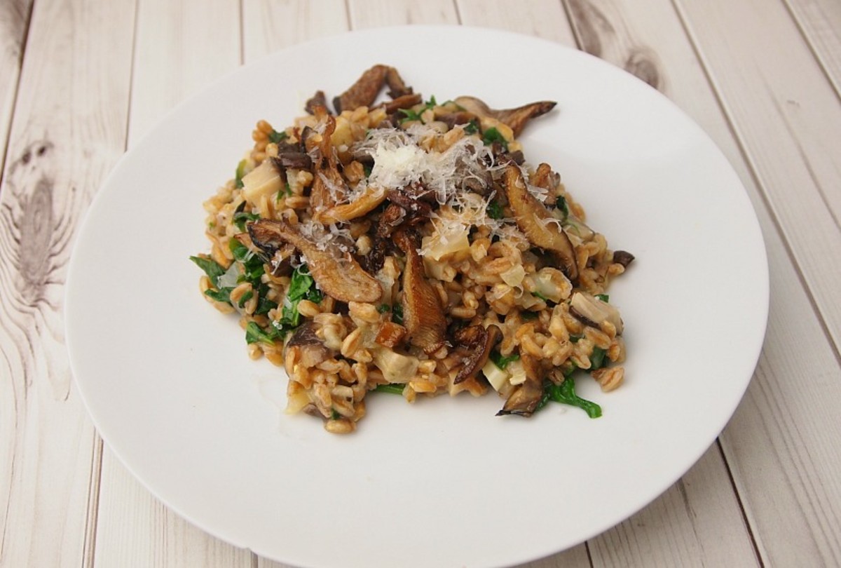 Mushroom Farro With Baby Spinach Jamie Geller, Farro, Mushroom, and Spinach Soup Recipe SimplyRecipes.com, Farro, Mushroom, and Spinach Soup Recipe SimplyRecipes.com.
